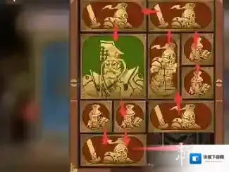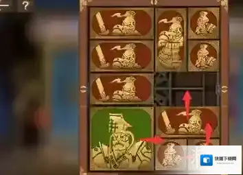 7、右下角的长方形向上移动,左下角的正方形向右移动,将军向下,中间的长方形向左移动。