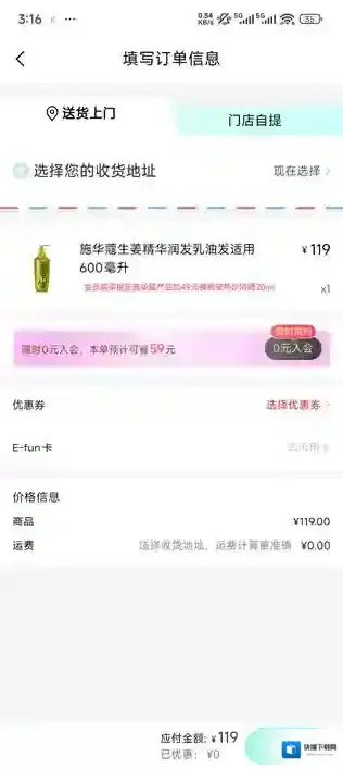 5、最后填写收货地址,选择送货上门或者门店自提,点击支付就好啦