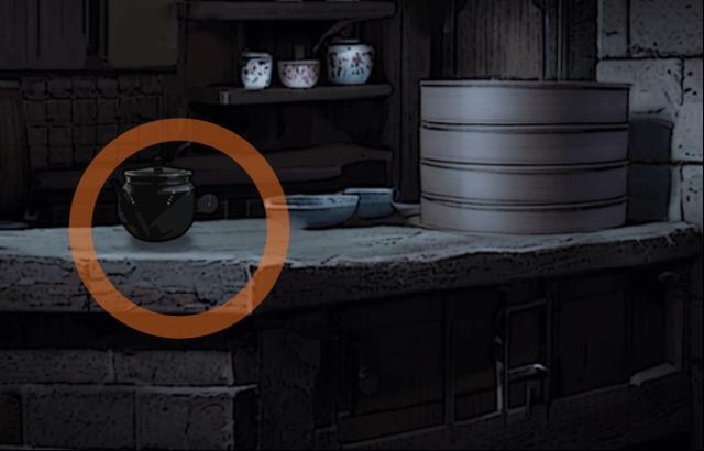 堂屋:拿取桌子上的葱油饼,将药罐放在桌子上方的蒲垫上,将墙灰和蜘蛛网放进药罐里,药方放在桌子上,将招魂铃挂到红绳子上,点击招魂铃,前方小高能,召唤女鬼。