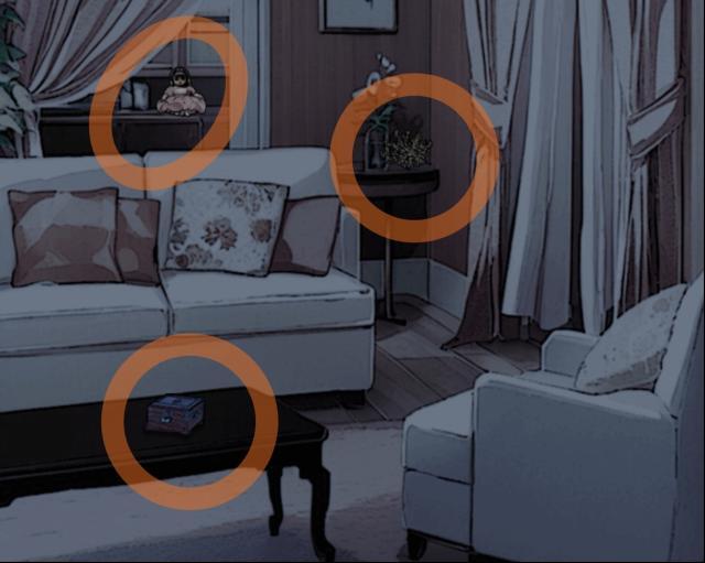 杨婉芝房间:拿走桌子上的满天星和后面台子上放的洋娃娃,桌子上的盒子根据文思堂获得的戌寅子时辰线索打开,得到娃娃的眼珠(这个时辰的答案是随机的,自己对坐钟的时间)。