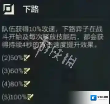 队伍获得10%攻速,下路弈子在战斗开始及每次释放技能后,都会获得持续4秒的攻击速度提升效果。