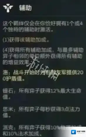 这个羁绊仅会在你恰好拥有1个或4个独特的辅助时激活。