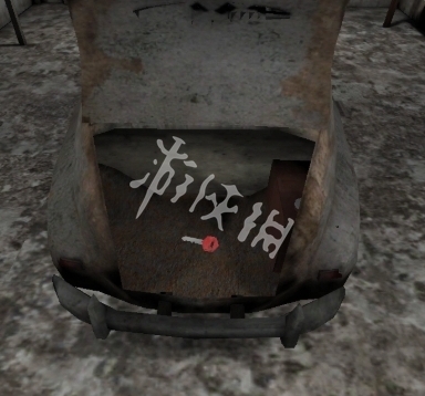 3、汽车逃脱:玩家需要修好汽车的各个部件、找到车钥匙、装满汽油才能启动汽车。汽车启动后,会冲破前方裂掉的墙壁逃离。尾随的奶奶被甩在后面望着主角离开。诡异的是,在这个结局的过场动画中,驾驶座上并没有人。