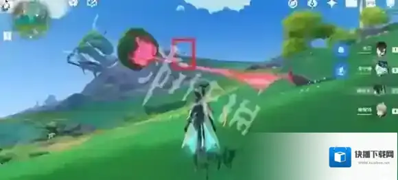 4、到达悬崖边石头上后,调整视角至东北方,就能看到蕴月幻蝶所在的洞口。