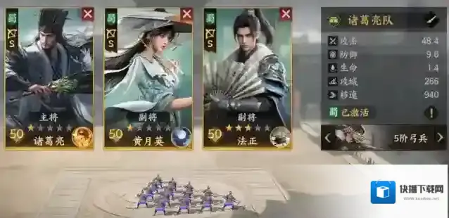蜀国弓兵核心阵容斗智弓是法正最经典的归宿,由诸葛亮(主将)、黄月英和法正组成。这套阵容完美发挥了法正的所有技能优势:黄月英提升诸葛亮的技能和普攻伤害,法正则进一步通过被动强化诸葛亮的普攻,同时主动技能为敌方附加易伤状态。诸葛亮作为全游戏智力成长最高的武将,其主动技能“步罡踏斗”的伤害会根据敌我智力差获得巨额提升,配合法正的易伤效果,可对小规模目标造成毁灭性打击。该阵容的释放顺序设置为诸葛亮主将先手输出,法正中位施加易伤,黄月英后手补充伤害和治疗,形成完美的技能循环。获取途径上,黄月英可通过“势起山河”金印档获取,诸葛亮则需要抽卡或后期活动获得,是中氪玩家的优选。