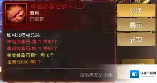 集齐80个碎片,即可兑换全新卦象位的卓越卦象石(巽)或卓越卦象石(坎),全新卓越卦象石可镶嵌在八卦的巽、坎位上。