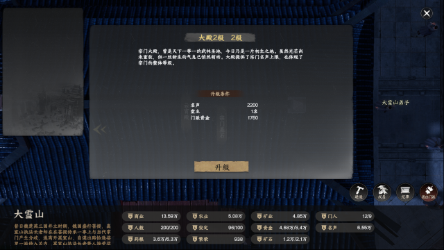 繁荣度可以建造昌瑞楼派遣门人完成任务增加