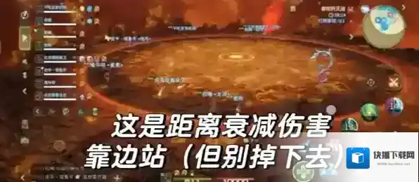 距离衰减伤害:泰坦的特效是橙色,但有些距离衰减特效是蓝紫色,总之看到从中心往外扩散的圈就是它了,一定要远离!(但是泰坦会砸掉场地边缘,所以要看好安全区)