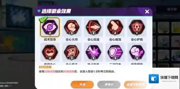 效果:使用位移招式和对战道具时,会进入隐身1.6秒并脱战。