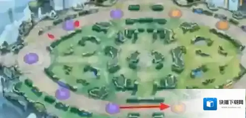 3、让队友站至图中的红色方框处,并且抢夺该处的野怪,之后再去箭头处投分。