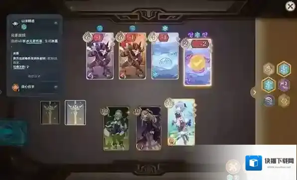 2、为了让大家减少凹度,笔者已经尽可能降低对元素骰子的需求,但是仍建议大家带上群玉阁、一掷乾坤、最好的伙伴等卡牌来增加骰子容错。