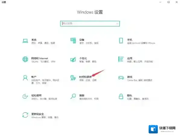 第五步,然后回到Windows设置界面,找到时间和语言选项,点击它。