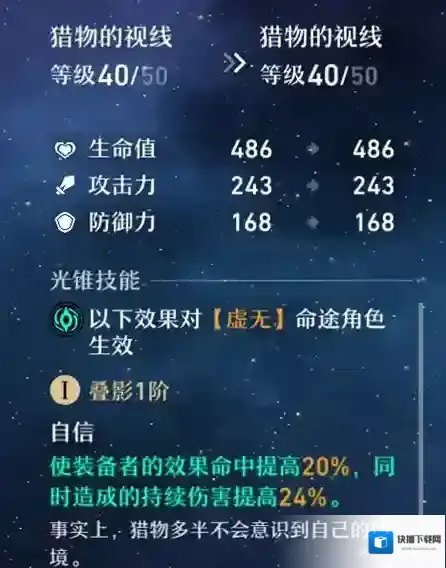 光锥可以选择专属光锥,因为天赋的基础风化概率只有65%,需要从光锥和装备上补一些效果命中属性才能保证稳定发挥。