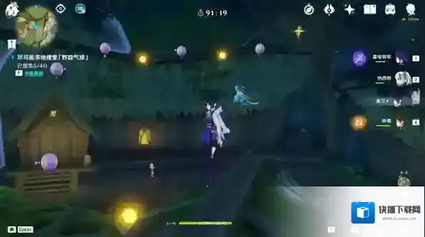 3、然后激活速纳气球后围绕这个红布房子周围出现10个气球 ;