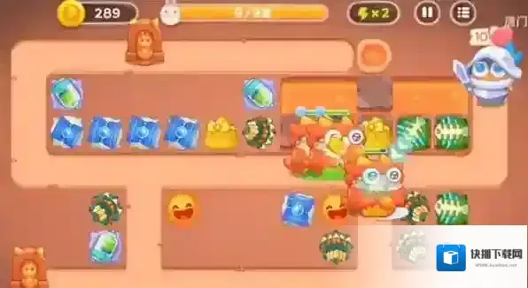 8、最后一波在右上角放鱼刺,最后一波的时候做到道具全清,集中火力清理几个速度较快的大兔子。