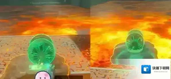 5、我们在旁边的岩浆中,对着下面流动的板子使用倒转乾坤,然后站上去。