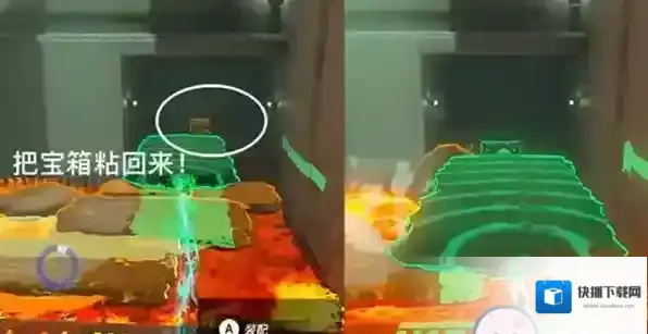 8、开完宝箱后,我们带上小球站上板子,顺着岩浆流往刚刚过来的地方漂就行。