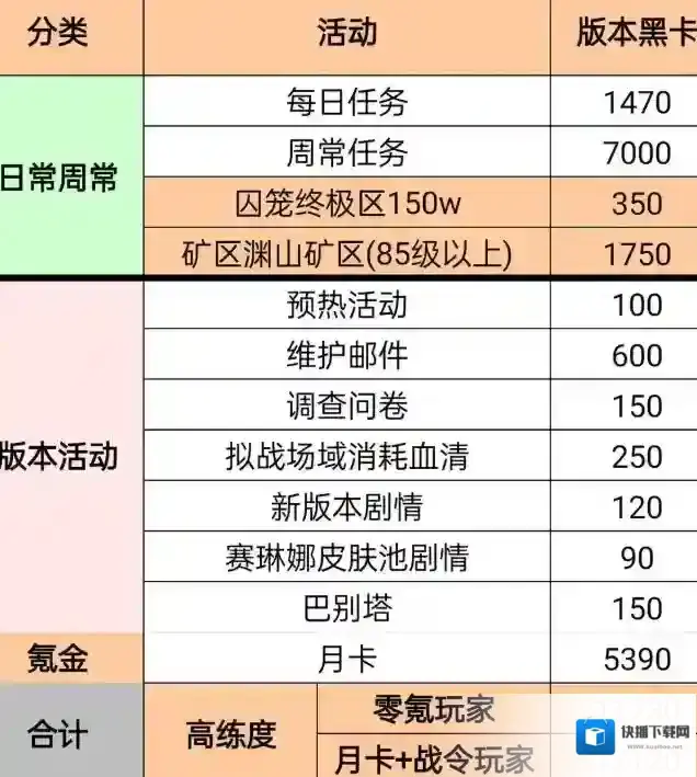 本次皮肤池持续整个版本7周,从7月3至8月21,可获取黑卡数量统计如下: