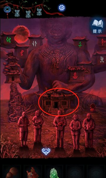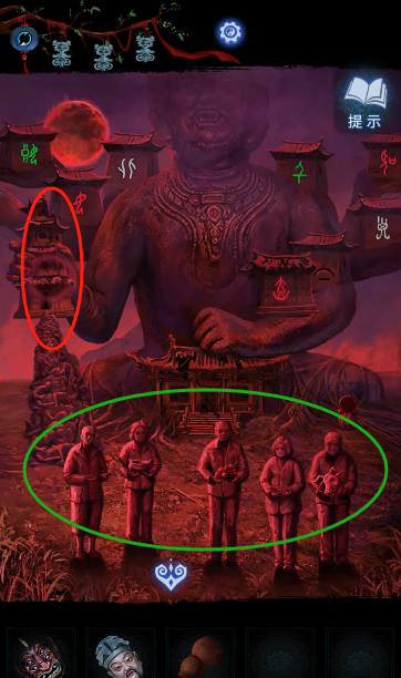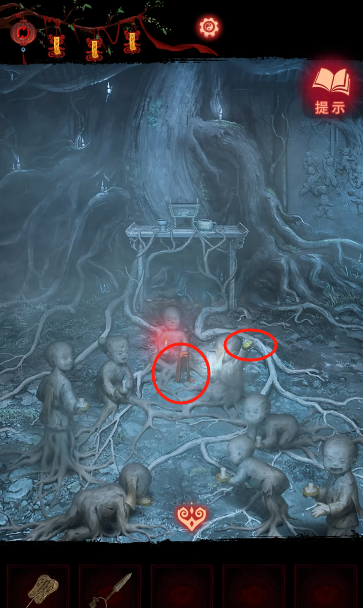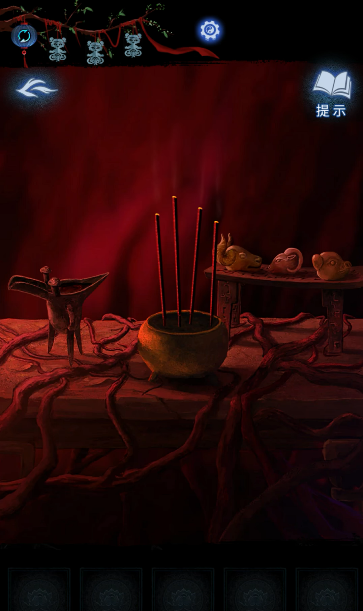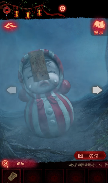 根据娃娃头上的符纸摇摆的方向来煽动铜扇即可撞碎娃娃获得带刺种子和石榴