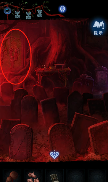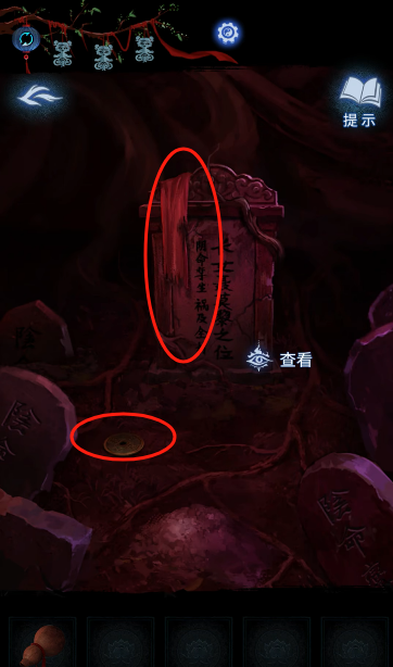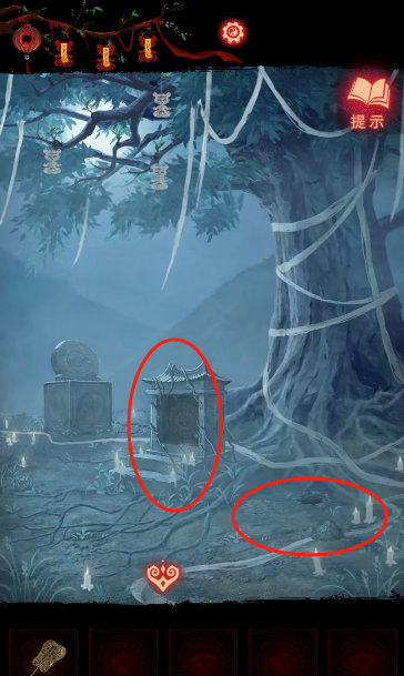 将坟前所有的道具回收,然后根据坟墓上的提示重新摆放这些道具