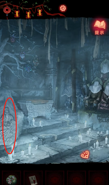 来到这个场景点击左侧的石碑,使用残缺的照片获得五谷