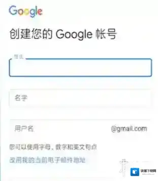 5、进入创建账号页面,按照页面提示依次输入姓氏、名字和自己设置一个邮箱地址名字。