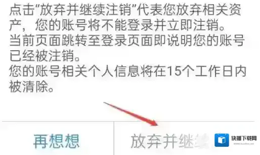 在弹出的对话框中,直接点击放弃并继续注销按钮,即可注销。