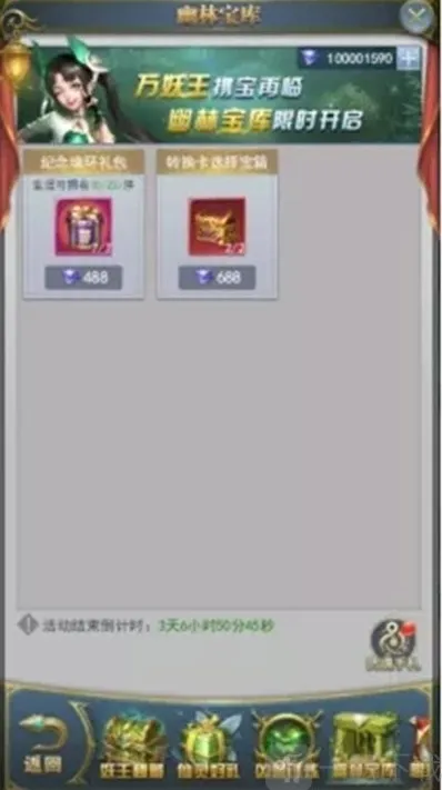 活动期间,可在幽林宝库购买各种稀有物品:凶兽魂环-万妖王之眼,转换卡选择礼包隆重登场。机不可失,失不再来!