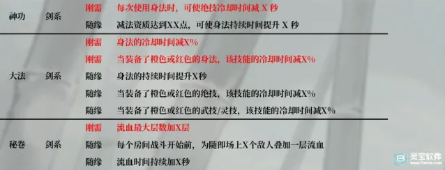 7、剑大法:装备橙红武技/灵技-25%冷却时间、身法-50%冷却时间、装备橙红绝技-25%冷却时间