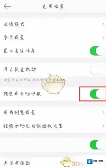 5、然后点击“横竖屏自动切换”旁的开关按钮(如图)