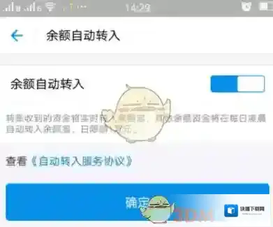 4.点击“余额自动转入”进入到下面这个页面。把这个项点开后按确定就设置好了。