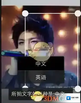 接着,我们点击“发现文字”选项试一下,这里会弹出一个文字语种选择,比如是中文还是英文,需要点选后才可进入到图片或实物上含有的文字搜索结果页面。