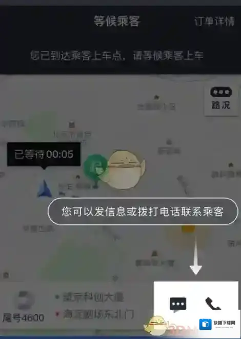 9:下图为等待乘客中,您可以通过箭头指示的位置给对方发短信或直接电话联系