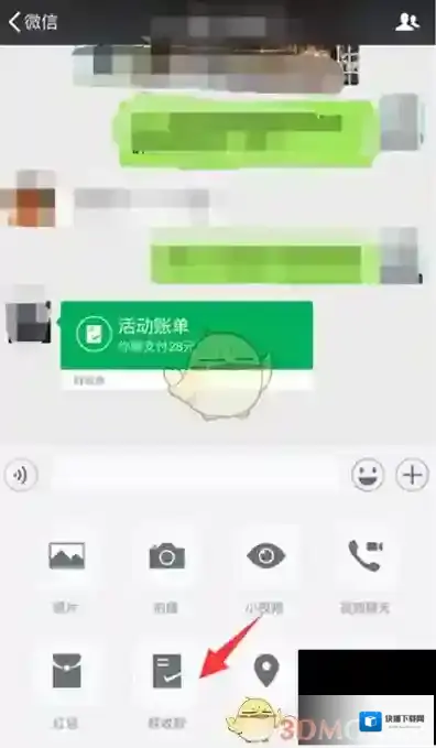 接着,在我们点击了这个+图标按钮后,我们可以看到窗口下方浮出一些功能选项,这里我们注意一个“群收款”的功能。