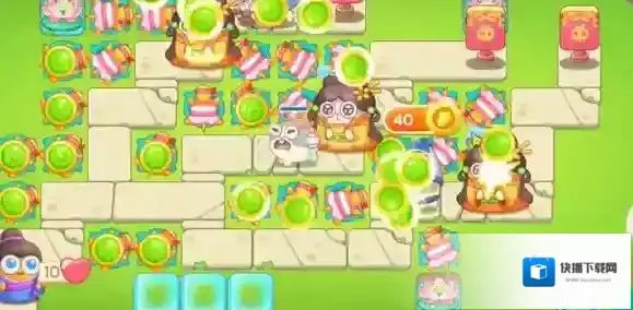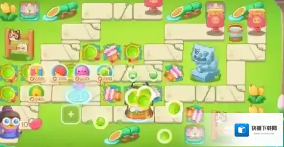3、在中间补充三个乌龟并升级,清理左上角的钱袋。