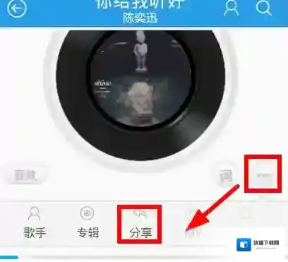 4、点击播放按钮播放音乐后,我们会找到一个分享的按钮,如下图所示: