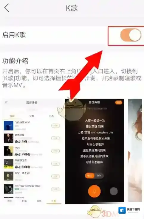 在右上方选择开启K歌功能,这时您的K歌权限就已经成功开通了。