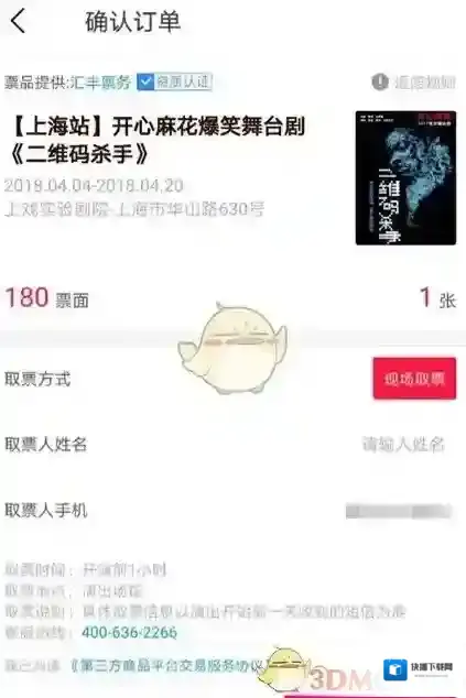 选择好心仪的场次,按下一步按钮来确认订单,就会出现取票方式啦,选择现场取票即可~