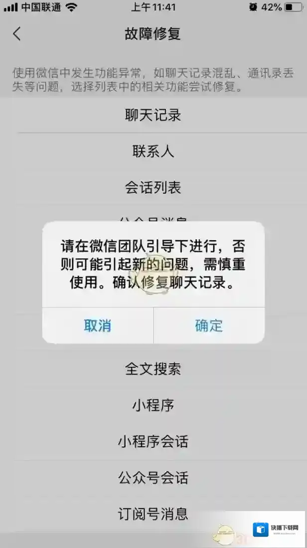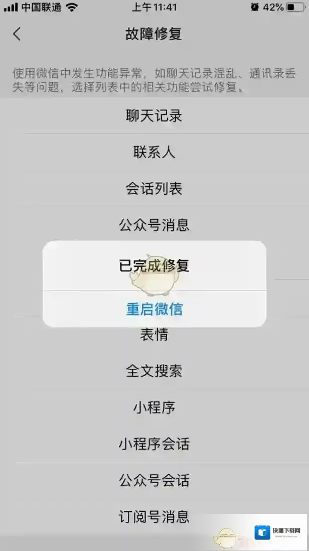 5、在故障修复界面,我们就能看到有很多的修复选项了,这里如果我们要恢复聊天记录的话,就点击“聊天记录”;