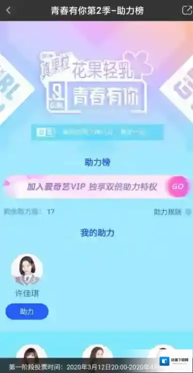 3、进入助力界面,可以看到选手列表。助力榜中显示剩余助力值,底部显示投票截止时间。