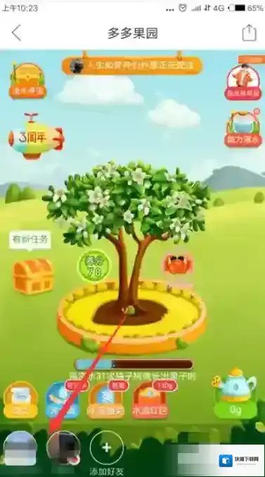 2、在跳转的果园界面中,点击下方的添加好友选项。