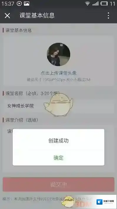 5、验证完成后,课堂“创建成功”