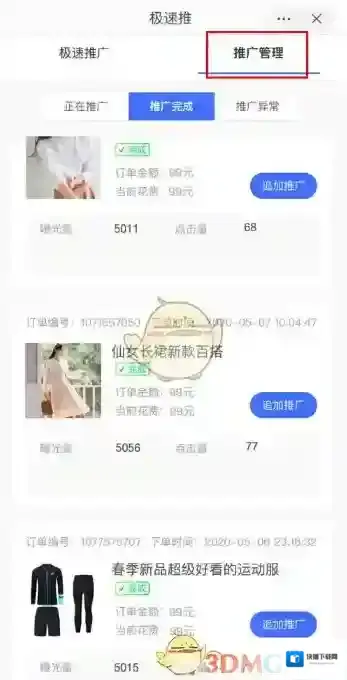 2、每个订单的效果数据,可在正在推广/推广完成列表,查看