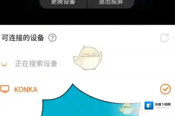 4、点击后底部会弹出一个可连接设备窗口,能看到电视机的名字显示在下面,点击一下。如图所示。