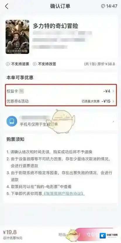4、选择你打算观看的电影,这里小编选择了“多力特的奇幻冒险”,点击“购票”。