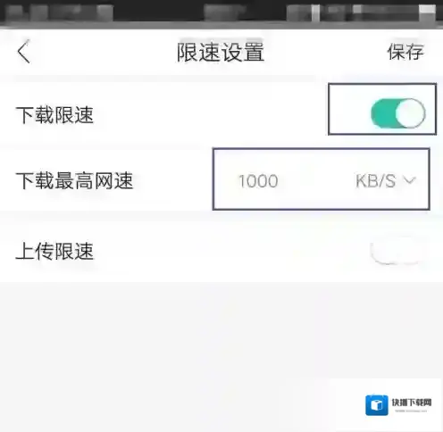 3、滑动滑块后,输入下载最高网速的数值,点击“保存”。