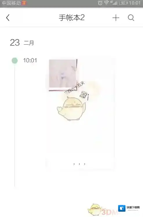 3、点击手账本开始记录,记录下方的第一个图片,可以插入手机的图片,可以插入自己平时现实拍照当插图,或者保存一些可爱的元素贴纸当贴纸插入。