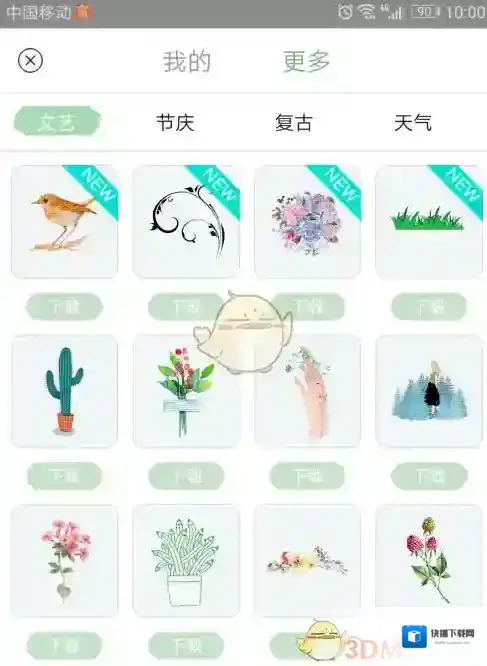 7、最后一个是贴图,有一些系统的贴图可以下载来贴在手账里面,位置都可以随意放,如果不喜欢可以尝试第一个说的图片自己保存的可爱元素放上去哦。然后全部编辑好后,就可以保存你的手账啦。