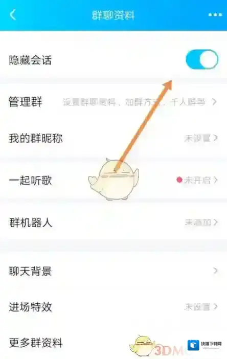 8、向下滑动界面,找到“隐藏会话”,关掉“隐藏会话”后面的滑块就可以了。