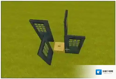 4.沿着最中间方块的四面放上四扇铁门,然后封住炸药桶,在正中间放上一个感压板,这个陷阱就大功告成啦;